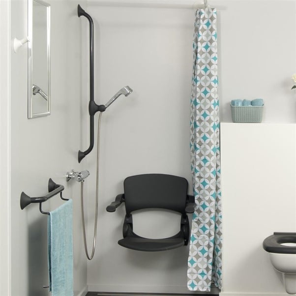 De opklapbare armleuningen vormen een belangrijk onderdeel van het gebruiksgemak. Ze kunnen afzonderlijk worden opgeklapt, zodat gebruikers gemakkelijker kunnen gaan zitten en opstaan. Dit maakt het zitje zeer geschikt voor zowel thuiszorgsituaties als professionele badkamerinrichtingen. De zitting zelf is opklapbaar, zodat het geheel weinig ruimte inneemt wanneer het niet wordt gebruikt. Dit is ideaal in kleinere badkamers of in douches die door meerdere personen worden gedeeld.