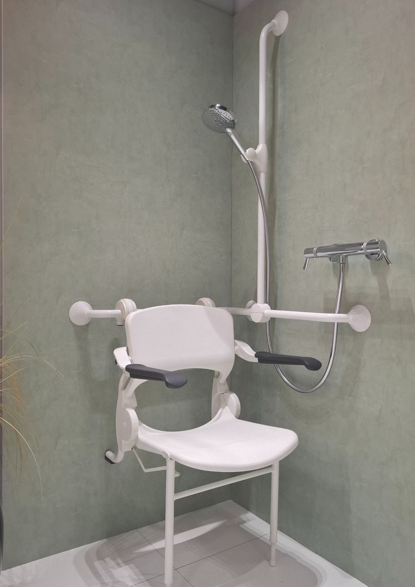 De zitting van het douchezitje is eveneens opklapbaar, waardoor het zitje weinig ruimte inneemt wanneer het niet wordt gebruikt. Dit maakt het douchezitje zeer geschikt voor badkamers waarin meerdere mensen gebruikmaken van dezelfde doucheruimte, of voor kleinere badkamers waar efficiënt gebruik van de beschikbare ruimte belangrijk is. Het zitje is eenvoudig aan de wand te monteren, mits gebruik wordt gemaakt van geschikte bevestigingsmaterialen.